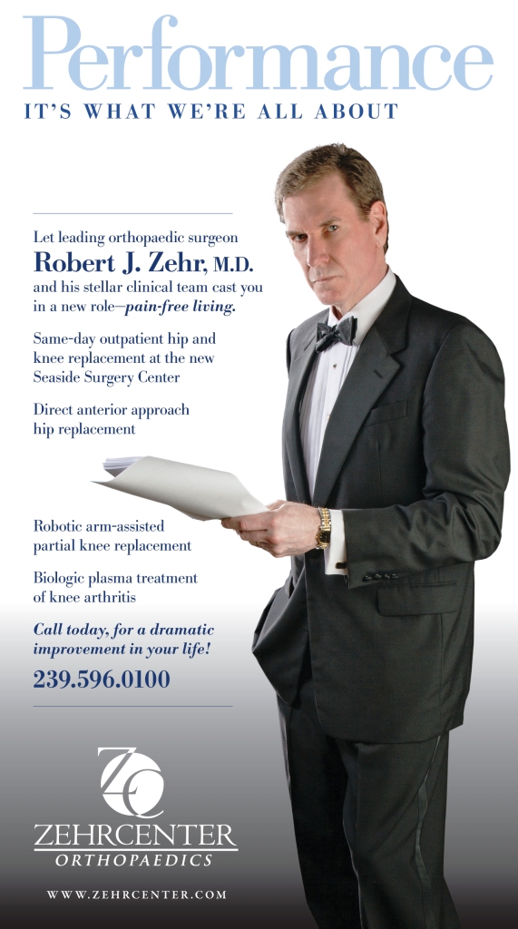 For “Performance — It’s What We’re All About” I encouraged readers to “Let leading orthopaedic surgeon Robert J. Zehr, M.D. and his stellar clinical team cast you in a new role – pain-free living.” The call to action: “Call today, for a dramatic improvement in your life!”