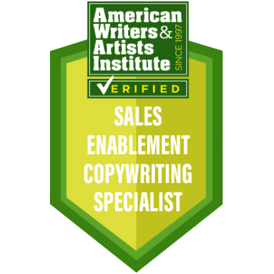 To give you an idea of Sales Enablement content, take a moment and read through the assignment I submitted for certification as a Sales Enablement Specialist through the American Writers and Artists Institute (AWAI). I included the assignment instructions and the client brief, along with the Reviewer’s comments on each of the four pieces required: